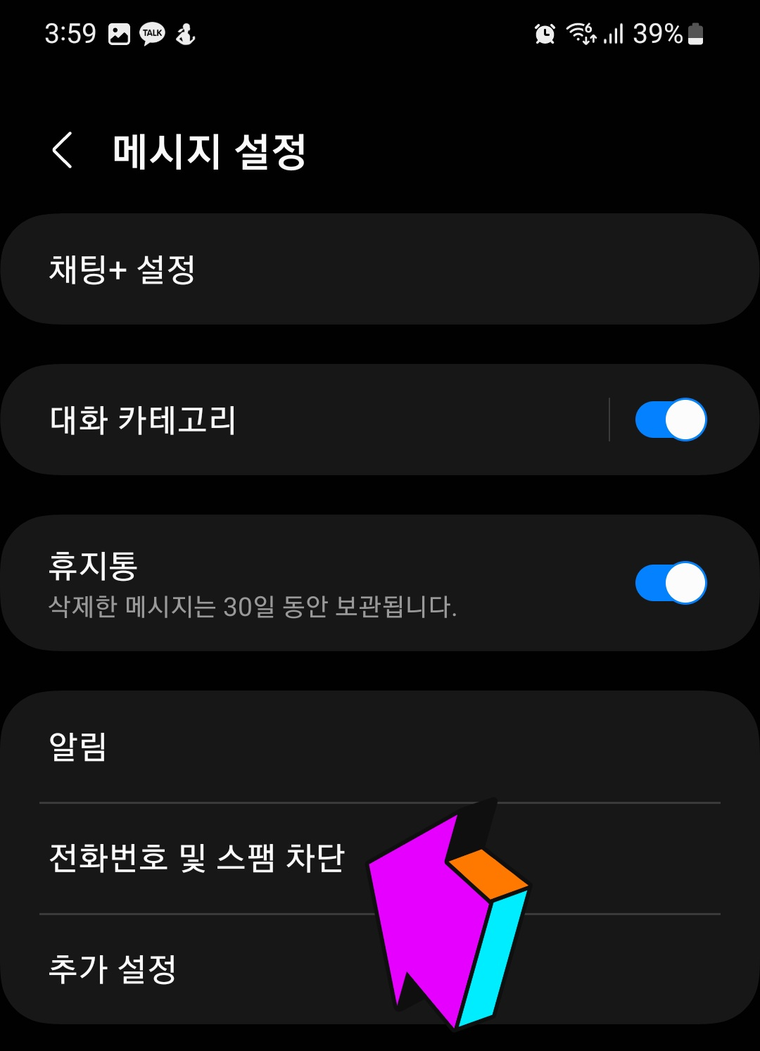 문자 메시지 창을 들어가면 요즘은 채팅이라고 명시되어 있더라구요.